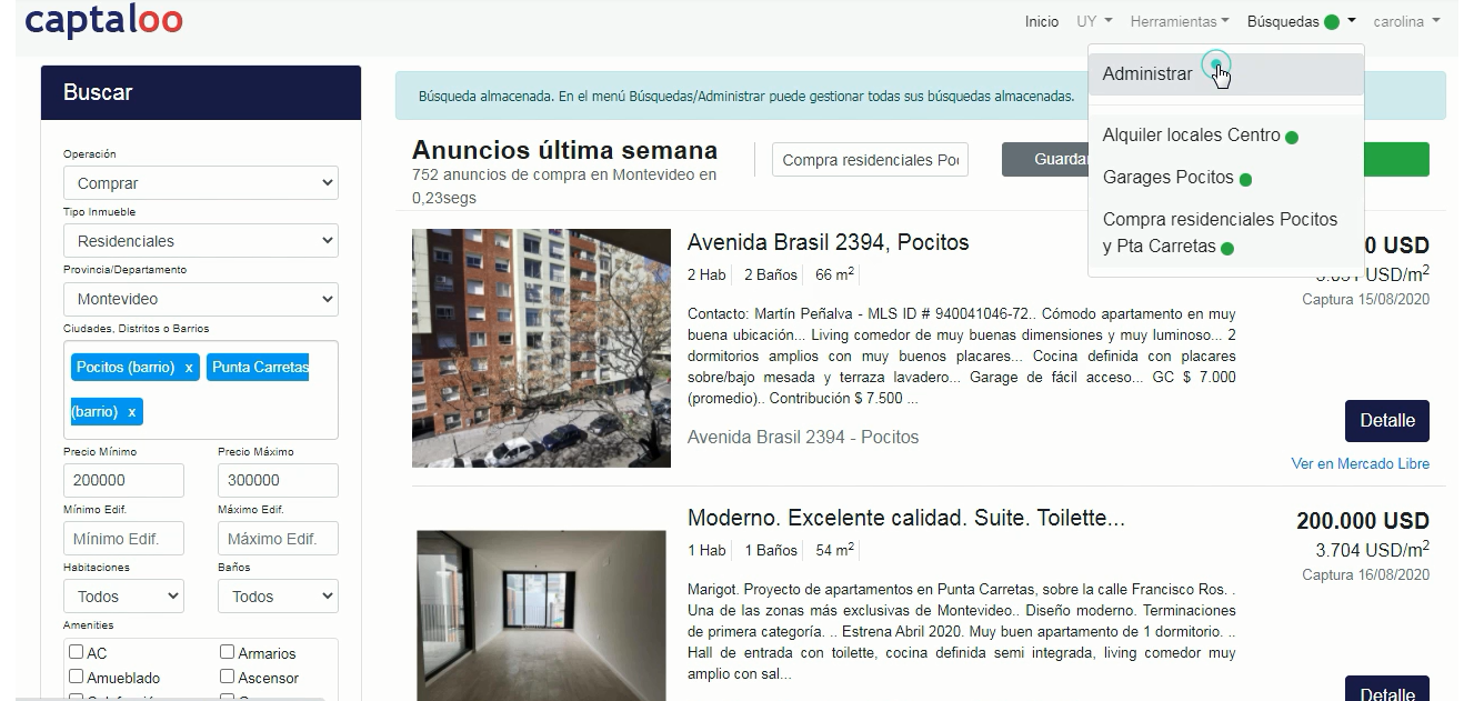 Hola! Hoy vamos a aprender cómo hacer búsquedas en Captaloo y de qué manera guardarlas para tenerlas siempre a disposición.